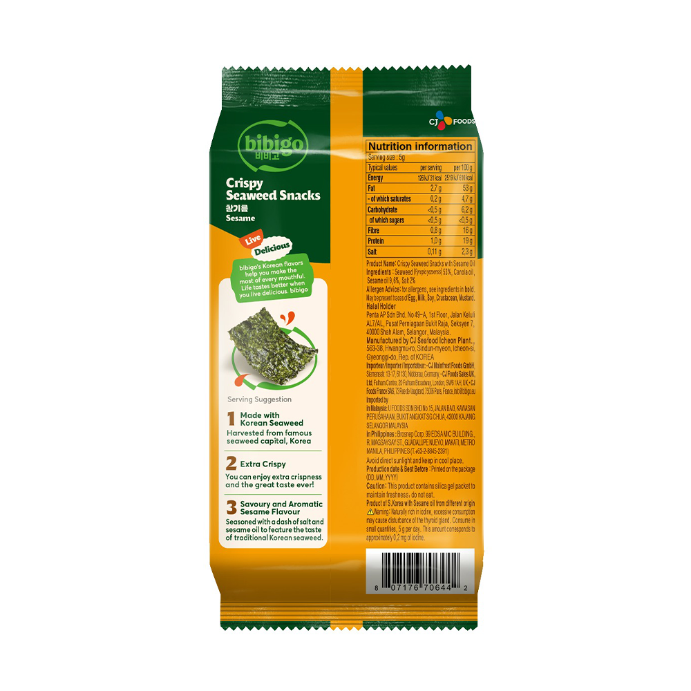 Bibigo Crispy Seaweed Snacks Original Flavor - 5 gm