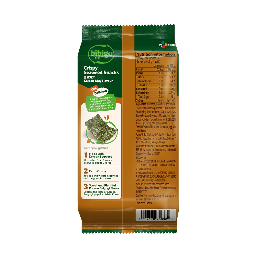 Bibigo Crispy Seaweed Snacks BBQ Flavor – 5 gm
